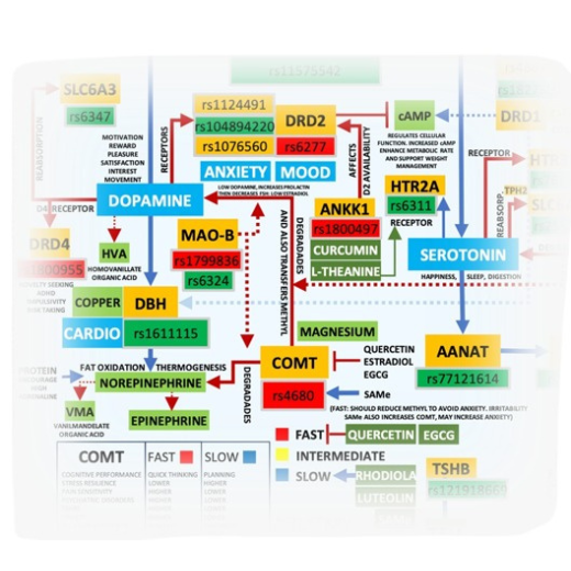 Uses genetic insights to craft nutrition and supplement strategies uniquely suited to everyone. By analyzing key genetic markers, we can identify predispositions to obesity, diabetes, and cardiovascular conditions, enabling early intervention and prevention. This pathway supports the development of customized nutrition plans based on your genetic makeup—ensuring that dietary recommendations align with how your body processes food and nutrients. We also address weight management challenges by examining genes that influence metabolism, appetite control, and fat storage—providing personalized strategies for sustainable results. Furthermore, the test reveals micronutrient deficiencies, guiding precision supplementation with nutrients such as Omega-3, Chromium, and Berberine to support metabolic health.
