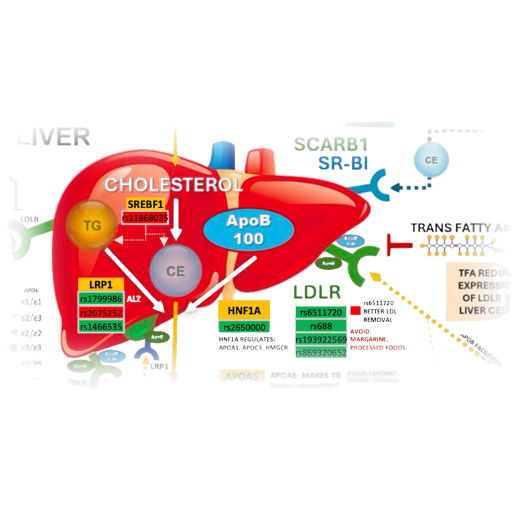 Enables early detection and prevention of non-alcoholic fatty liver disease (NAFLD) through genetic insights. By identifying individuals at higher risk of fat accumulation, liver inflammation, and fibrosis, this pathway allows for timely and personalized interventions. Tailored dietary and supplement strategies are developed based on genes linked to lipid metabolism and oxidative stress, supporting liver function and reducing fat buildup. Early action guided by genetic markers helps prevent progression to cirrhosis and irreversible liver damage, empowering individuals to take proactive steps toward lasting liver health.